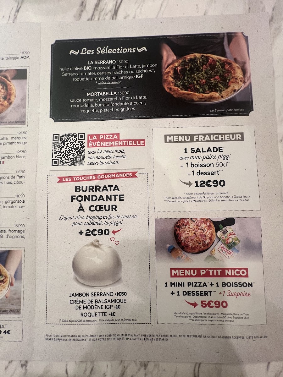 The menu features a variety of pizzas that have won over many patrons. As highlighted by satisfied customers, the pizzas are not only tasty but also perfectly sized. One reviewer even noted that this is the best pizza they’ve had in France, emphasizing both quality and affordability.